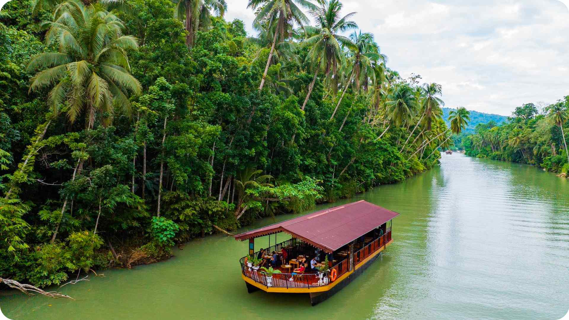 • 12:00 p.m .: Local buffet lunch aboard a boat on the Loboc River (Boholanese specialties: grilled chicken, fresh fish, tropical fruits).